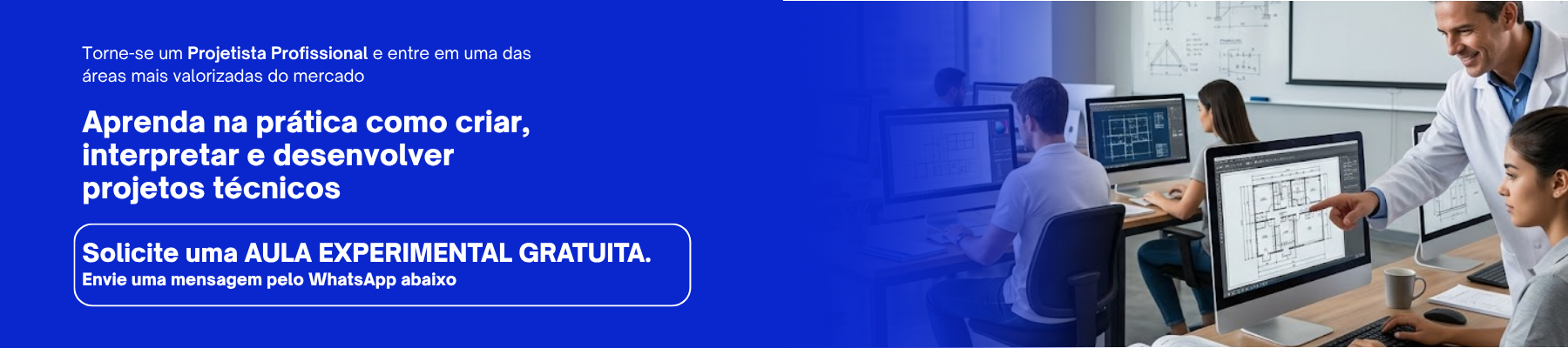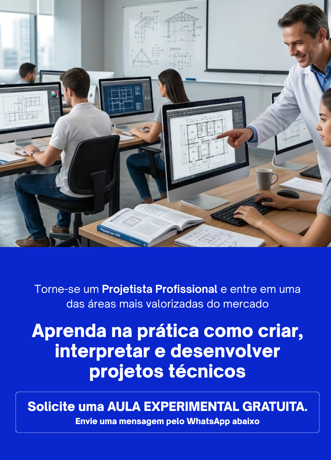 Durante o curso, você vai entender como funcionam os projetos, como interpretar plantas e desenvolver soluções técnicas com precisão. Tudo isso com uma abordagem simples, direta e voltada para a realidade das empresas.